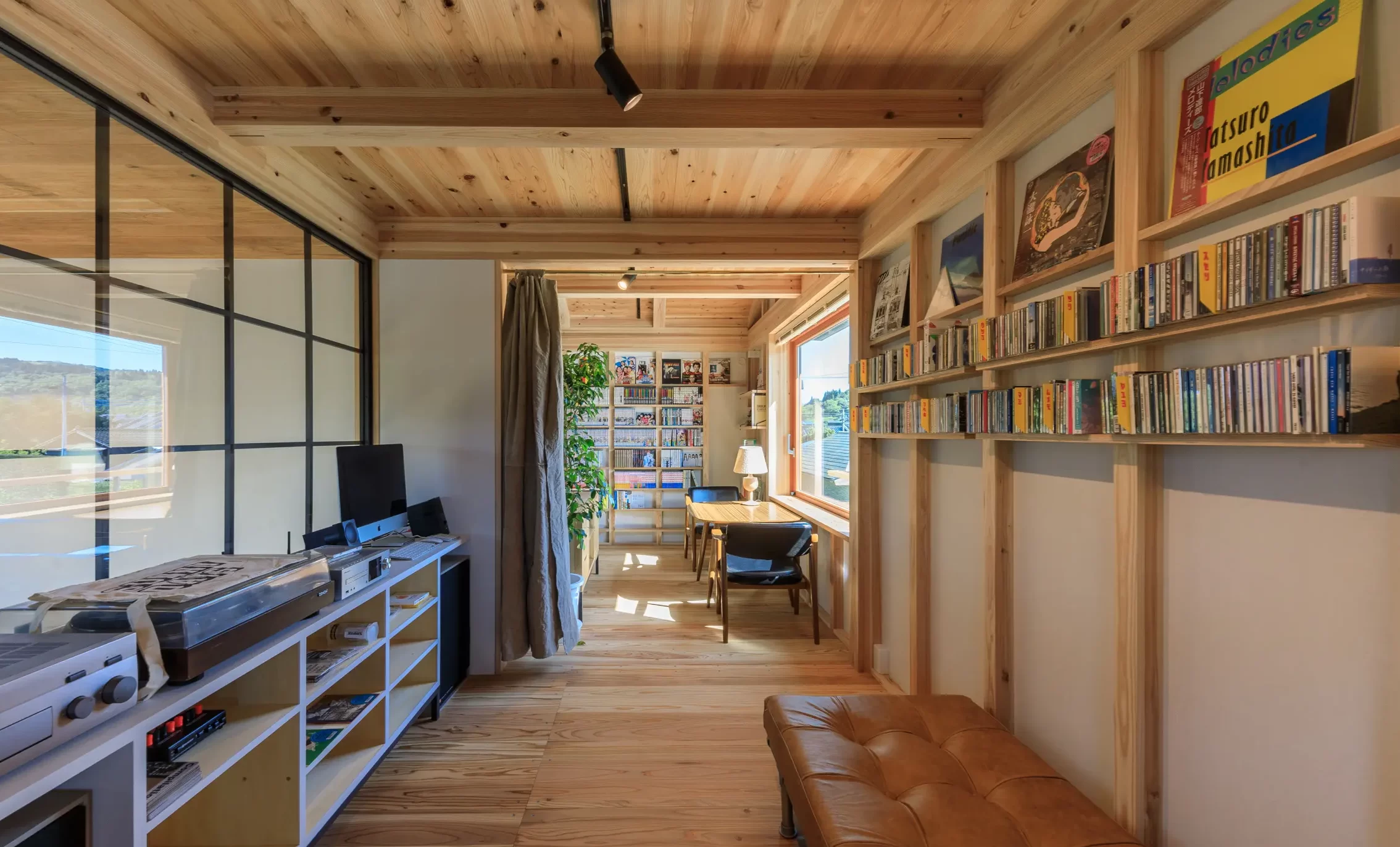 幅2mの大きな木の窓は、福智山の稜線を絵画のように切り取ります。