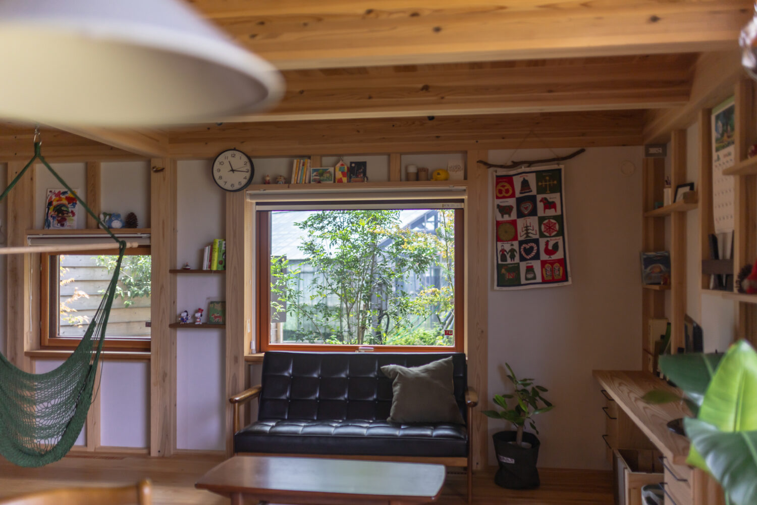 自然とつながる大きな窓、そしてしっかりした構造、ながく暮らすために必要な器はしっかりとしているから、 後は 暮らしながら自分たちで足していけばいい。子どもが巣立てば仕切りを外して夫婦ふたり、ゆったりとした暮らしに——
