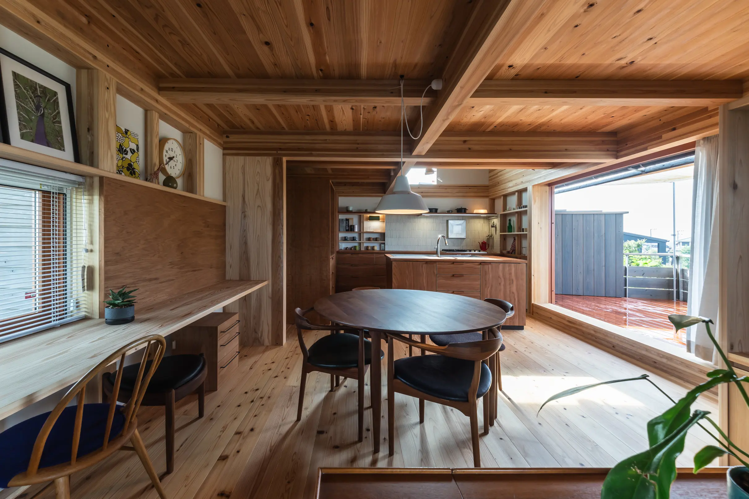 心地良い景色が映る窓から、光や風が家族団欒のリビングを抜け、