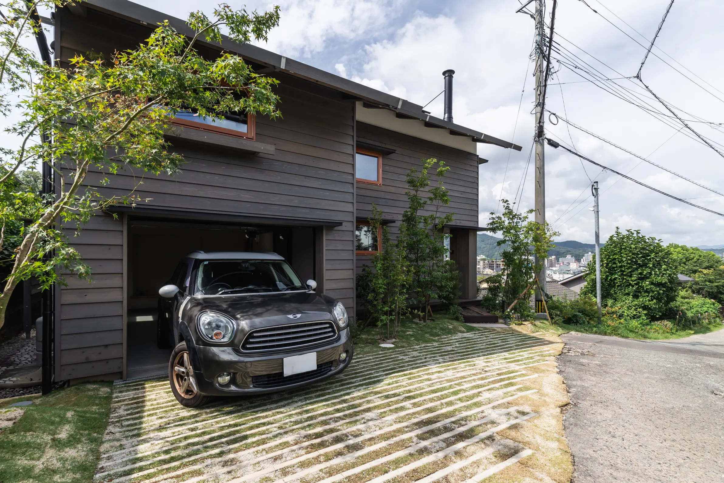 「通り土間とビルドインガレージのある1階」