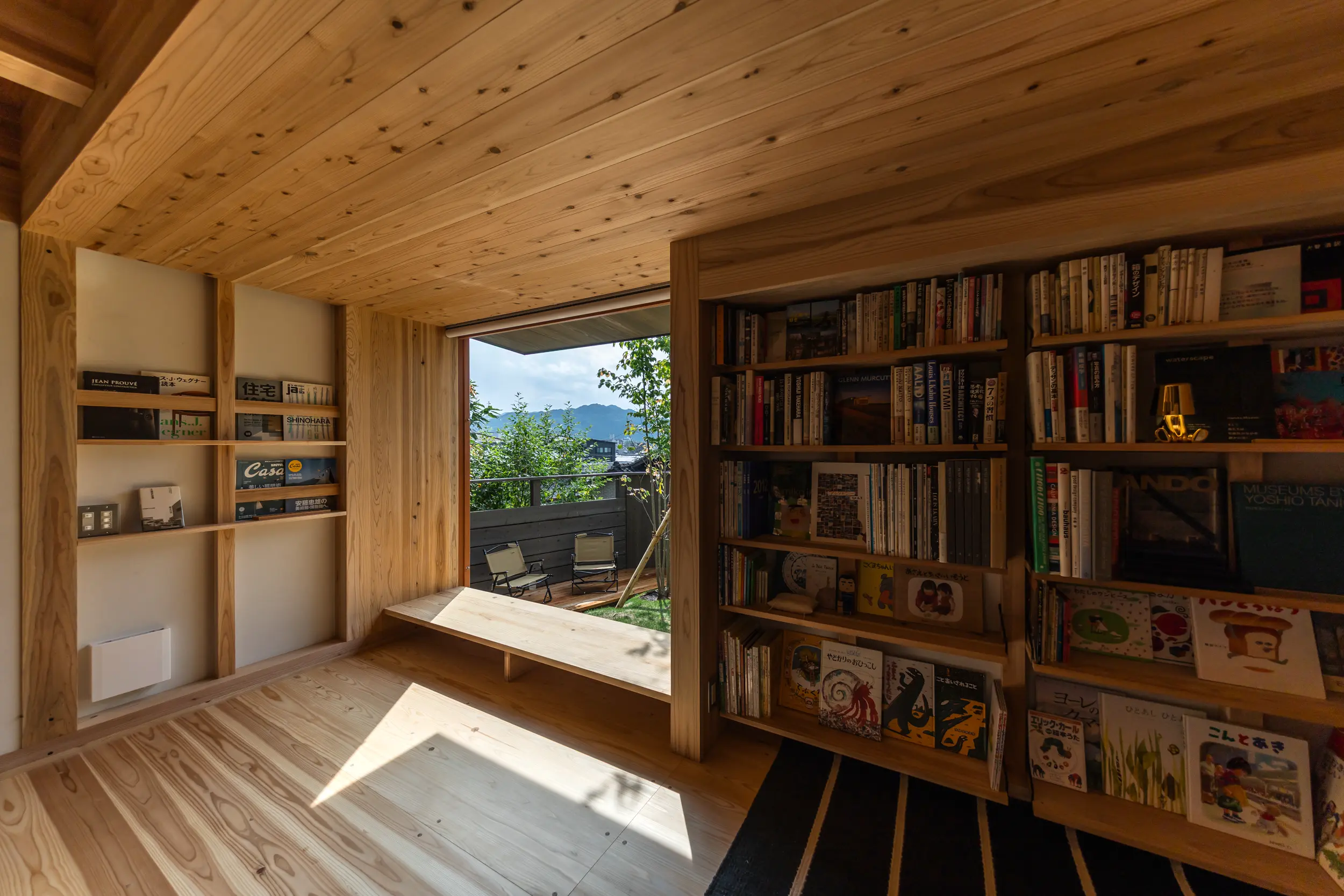 「静けさと木漏れ陽を感じる地下の寝室・書庫」