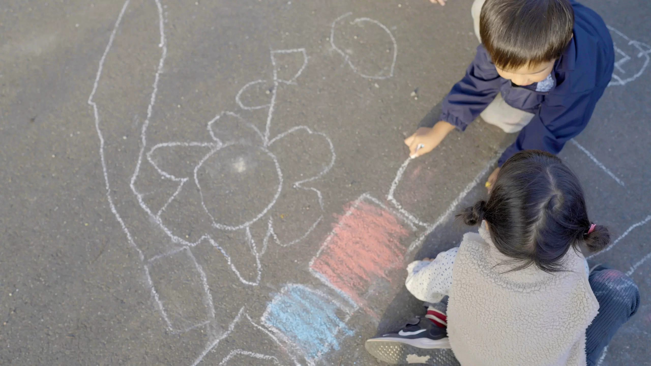 「子どもたちは道路にチョークでお絵描き。いつも笑い声が響いていています♪」