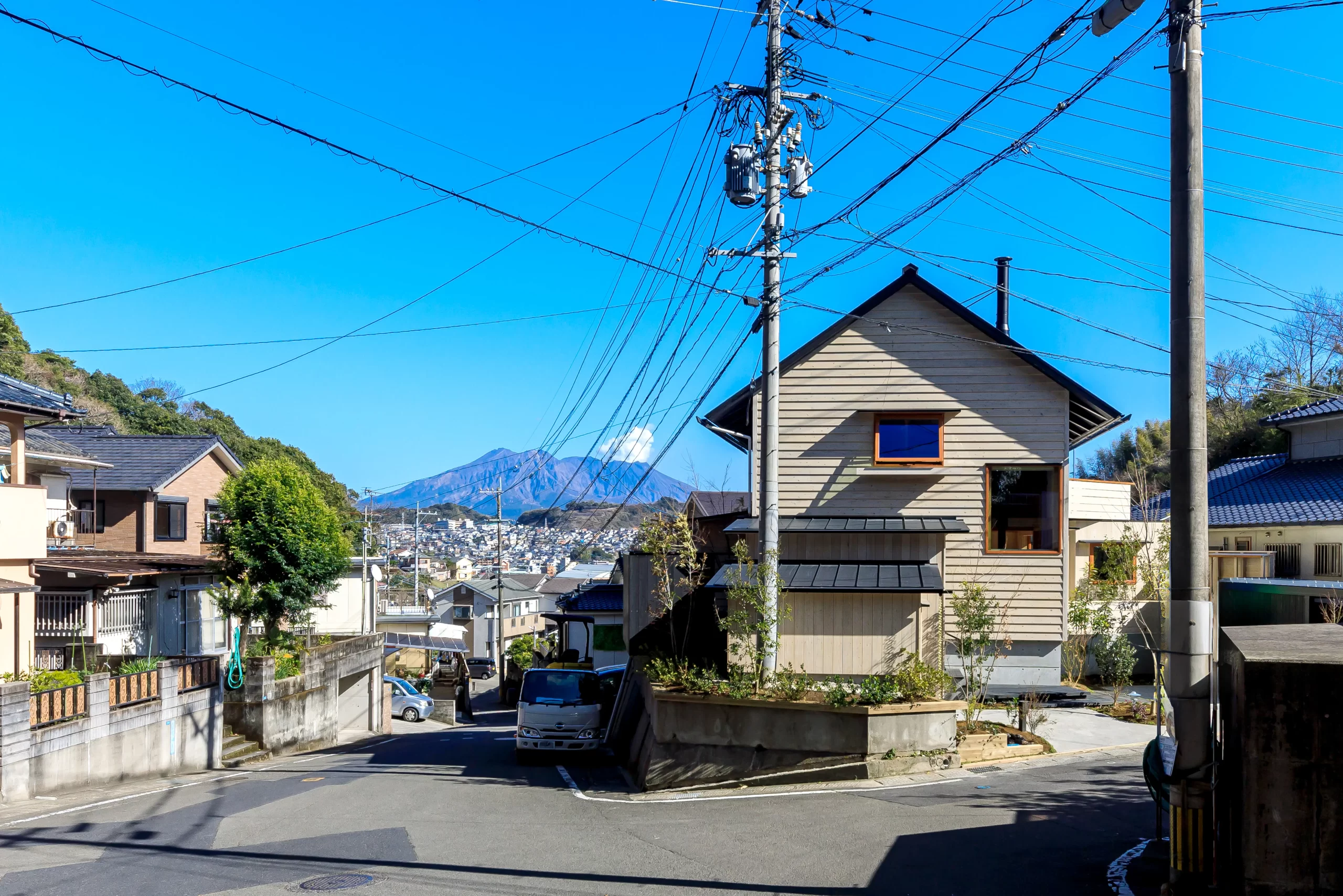 「どうやって行くのだろう?」と、なんだか気になる場所に、自然を愛するご家族が “桜島と愛猫と緑” に寄り添い暮らすおうちを建てました。
