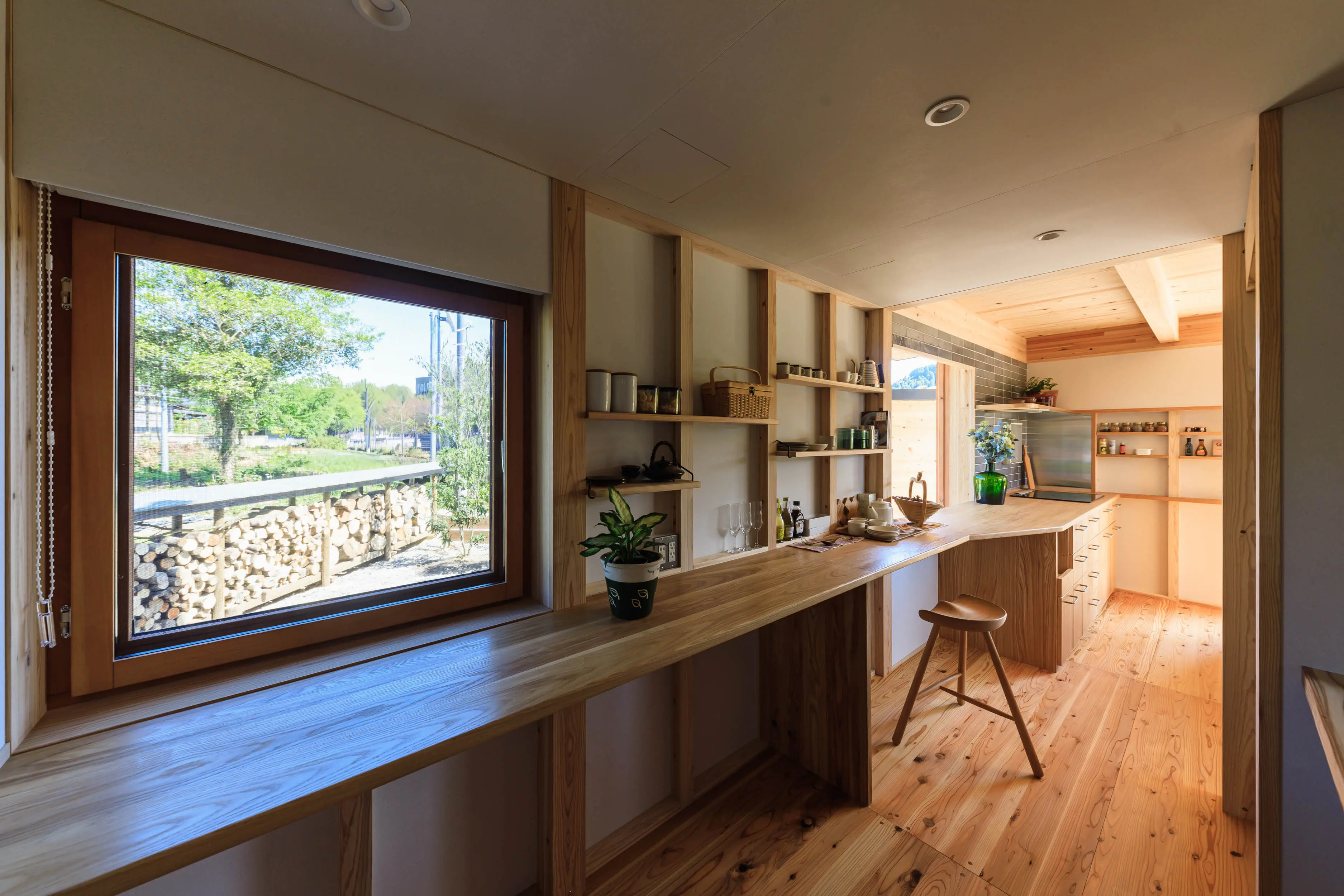 大きな木の窓で、景色を切り取る