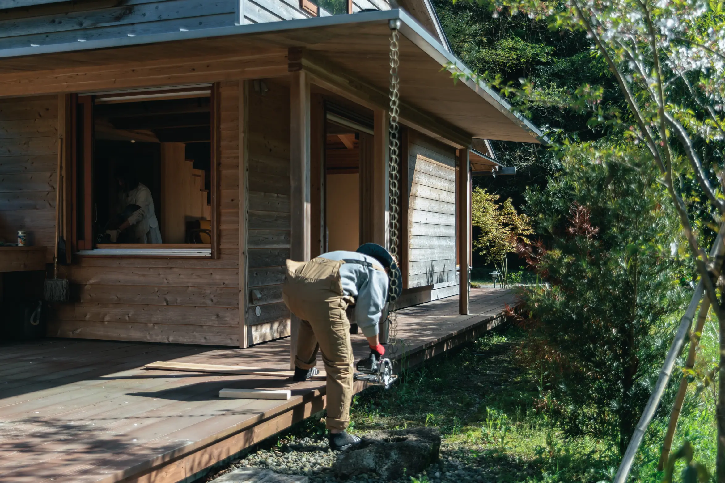 建築中から、職人さんの隣でデッキをつくったり、道具小屋をつくったり、かなり本格的なDIYの数々。