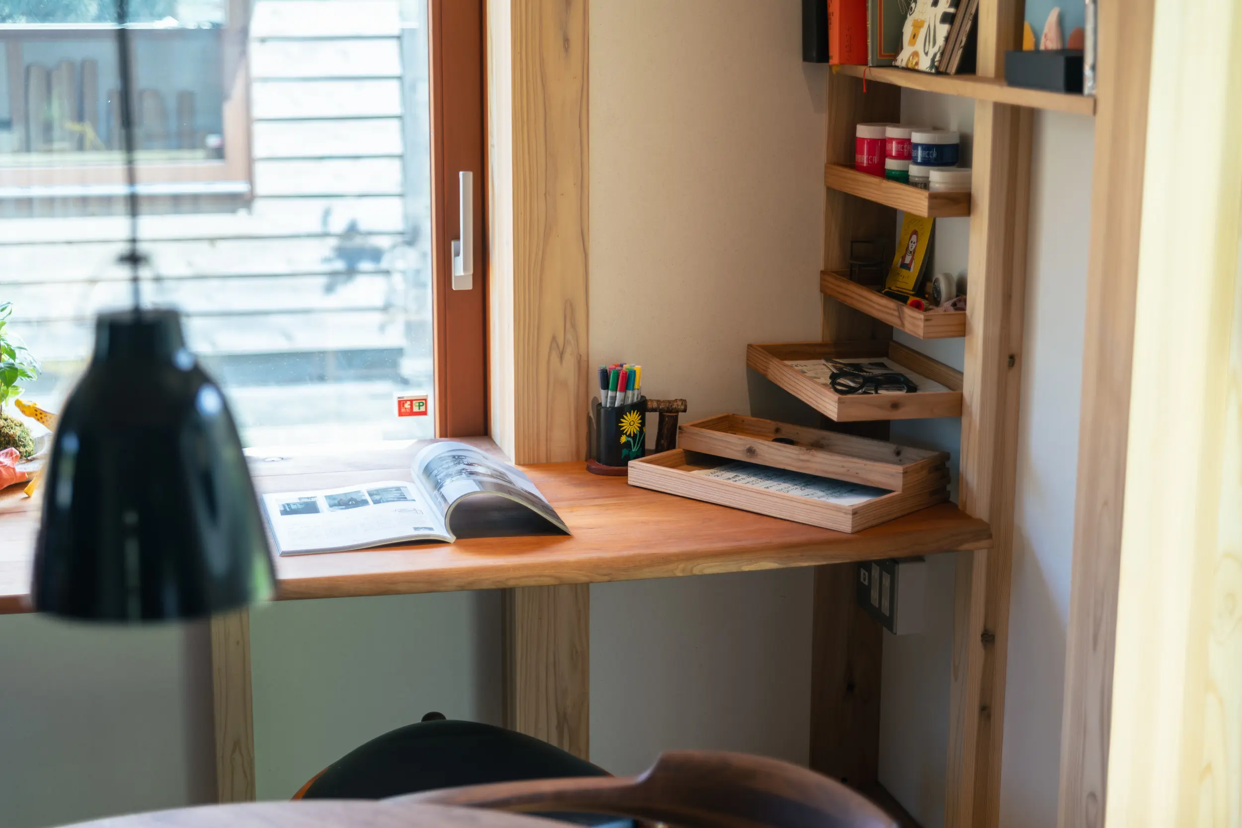 好きなモノ、使いかけの道具、明日も使う材料… 全部そのままにしても許してくれる。そんな家とハナレの関係が、私たちの気の向くままに、自由なライフスタイルを大事にしてくれている気がします。