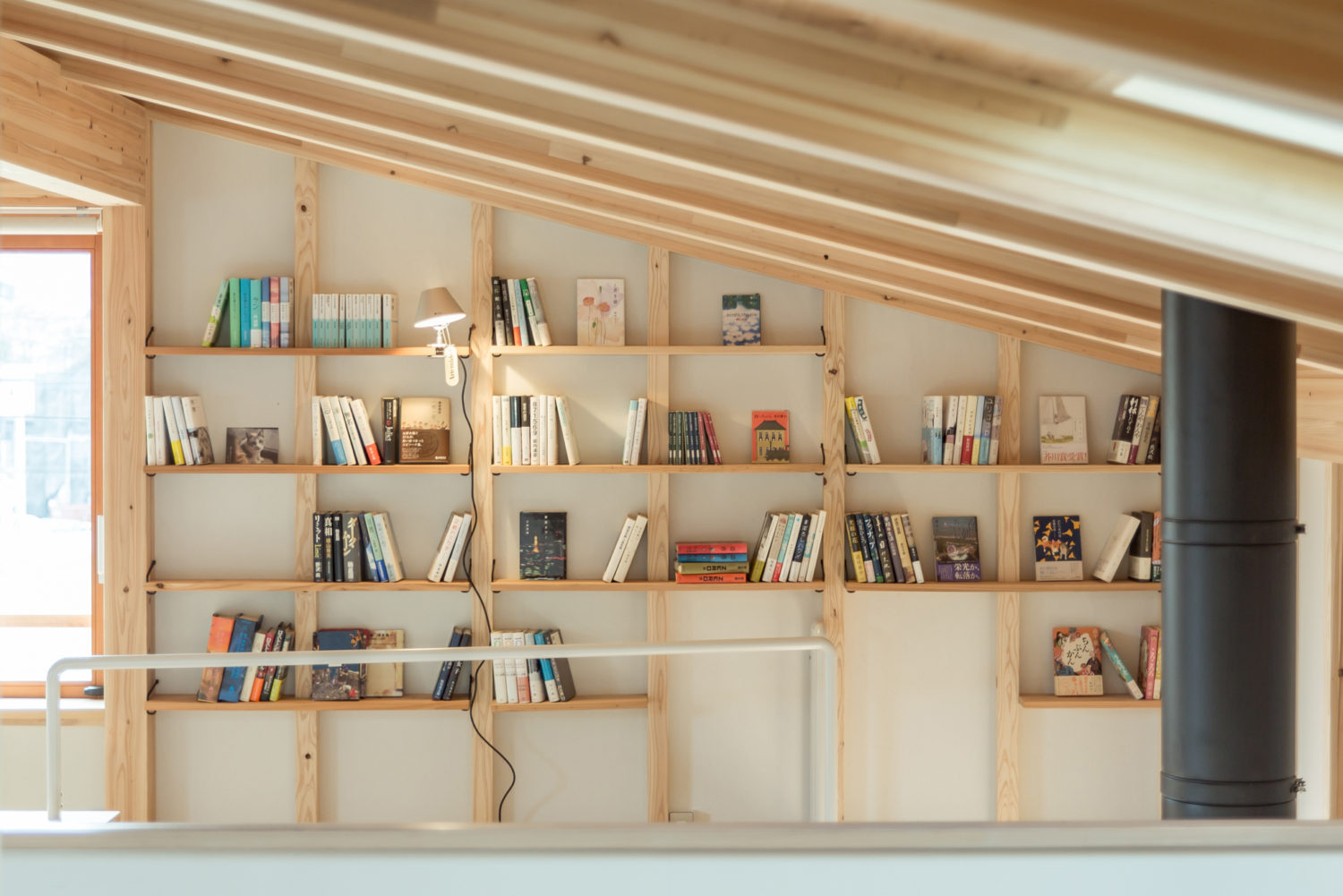 「働く壁」を使って、家じゅうに本棚を好きなだけ増やすことができる家です。