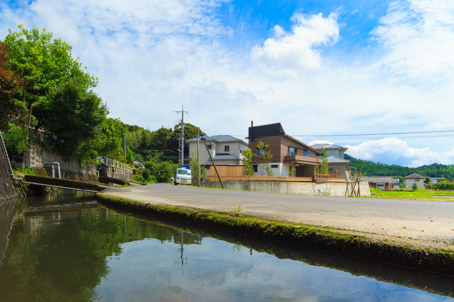 和室とリビングを繋ぐ縁側デッキに腰かけて、